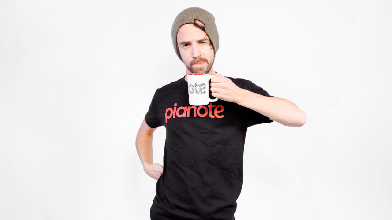 - Get your daily dose of energy (and caffeine) with this 15oz ceramic coffee mug. Matte white on the outside with a black/red sketchy Pianote logo, and red on the inside.